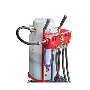 Easy to handle and simple to use with CAD engineered frame with FEM method, pneumatic wheels, quick connectors and ergonomy, mixing calculations ruler and level indicator.